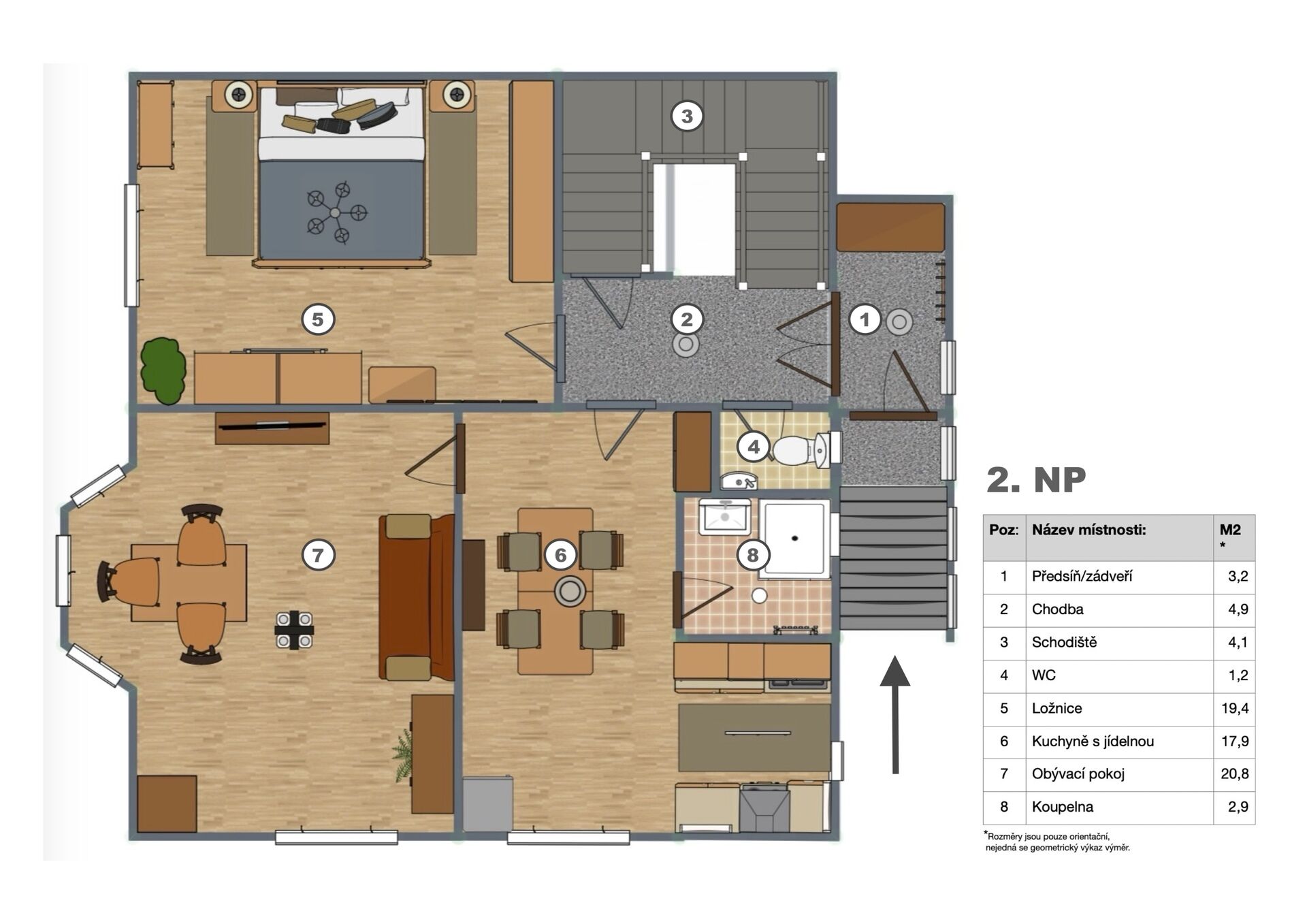 Každé podlaží působí vzdušně, světlým dojmem a nabízí příjemnou kombinaci elegance a pohodlí.