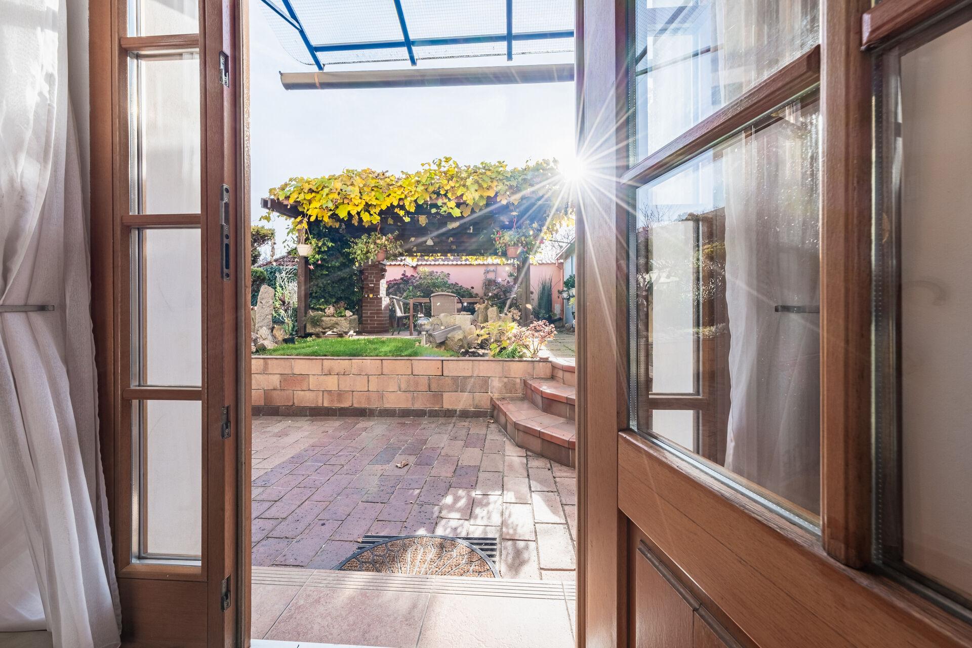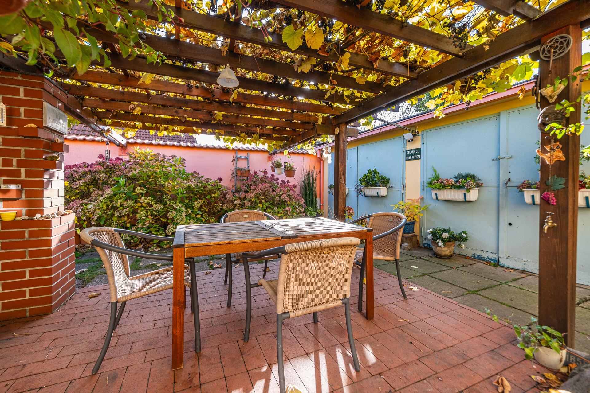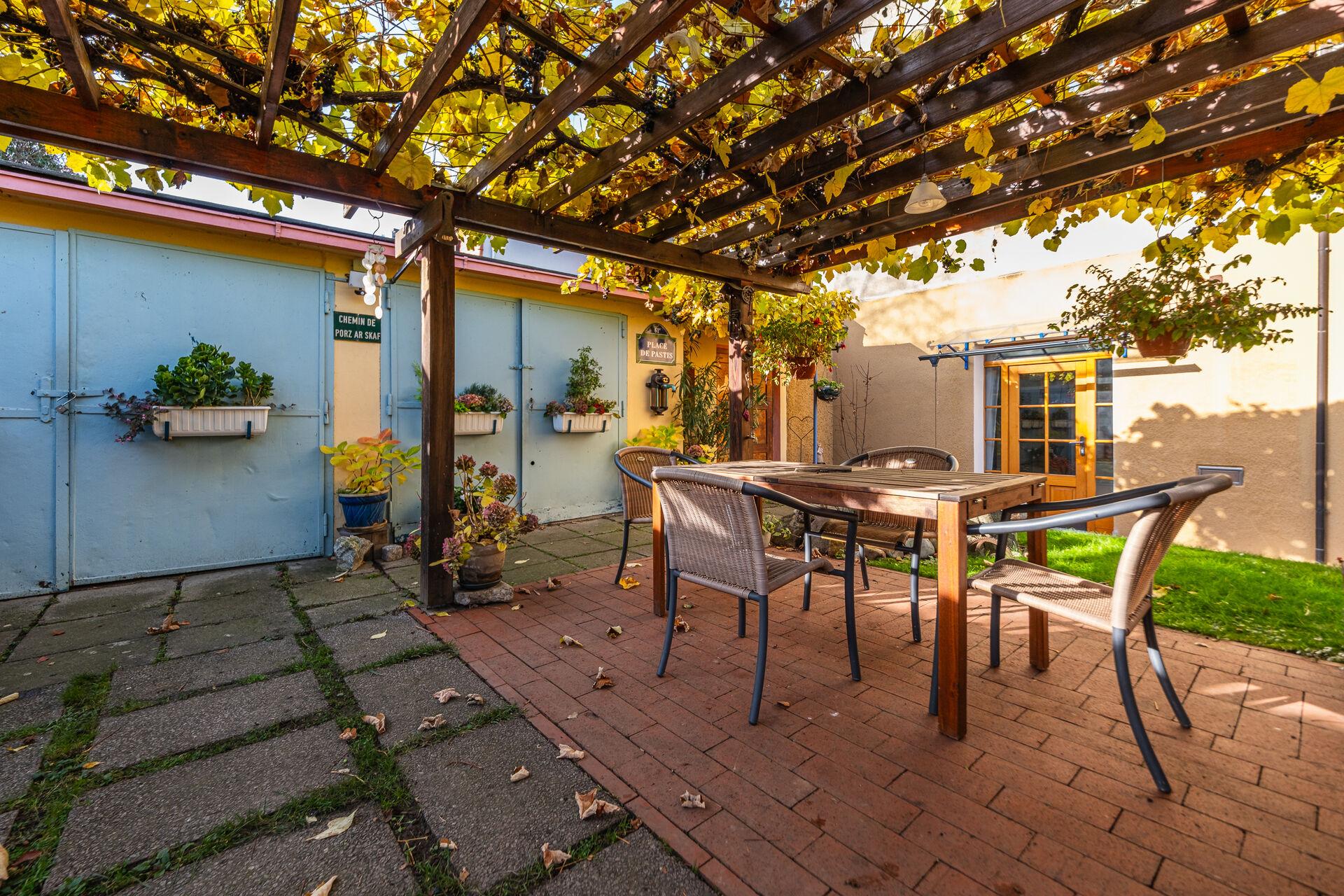 U domu je nádherná udržovaná vzrostlá zahrada, která v sobě ukrývá zahradu s terasou, posezením a garážemi.