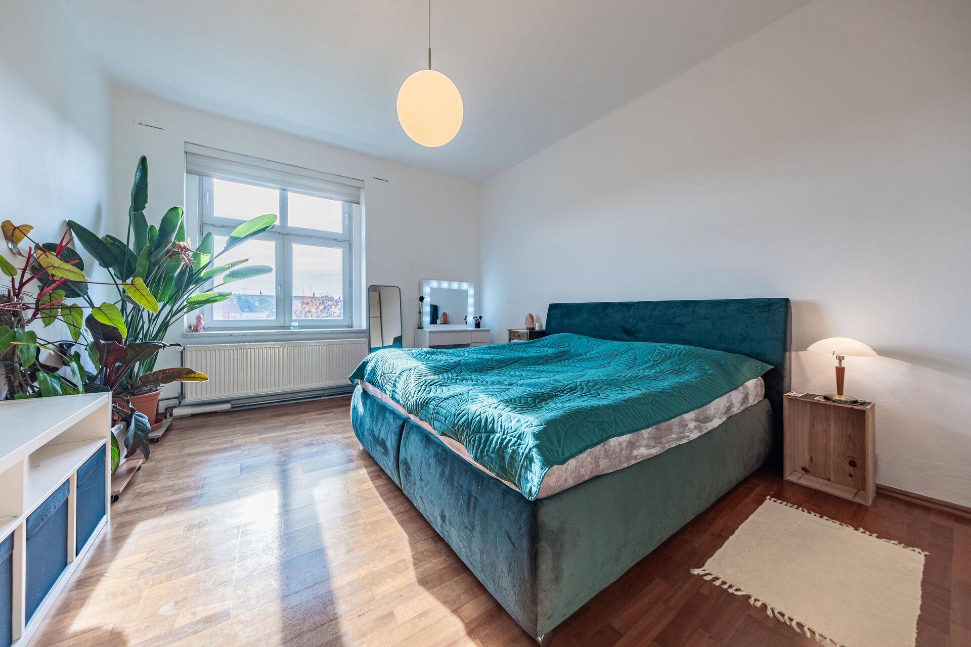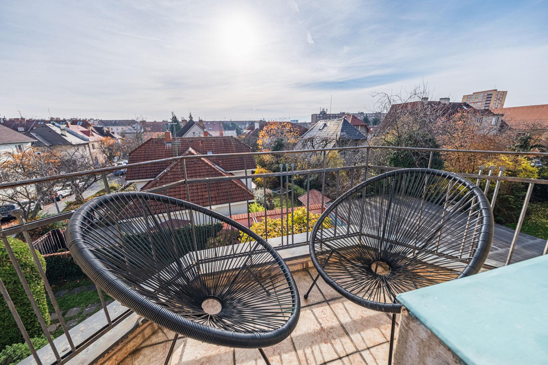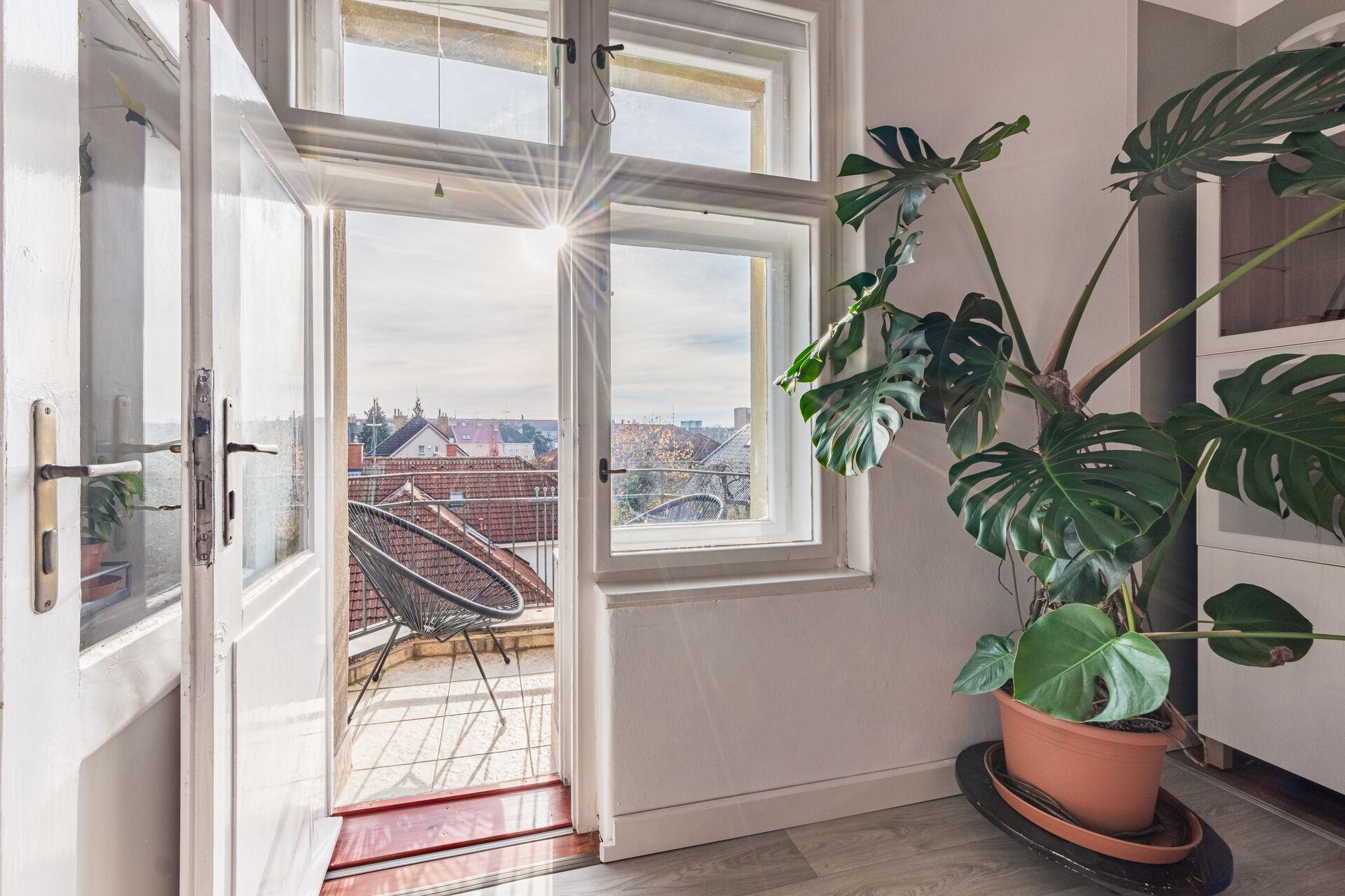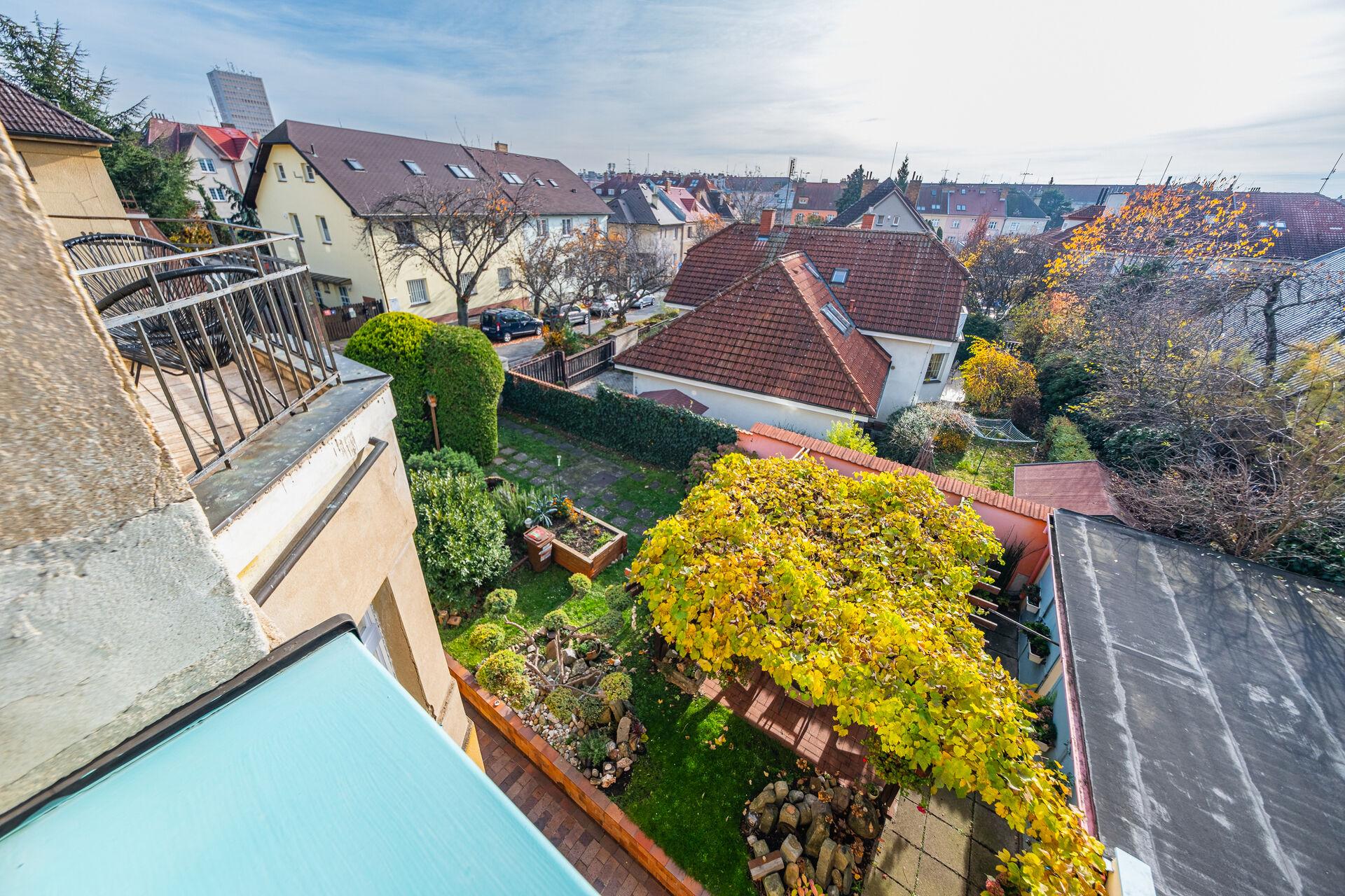 • balkón s výhledem do zeleně a na okolní střechy
