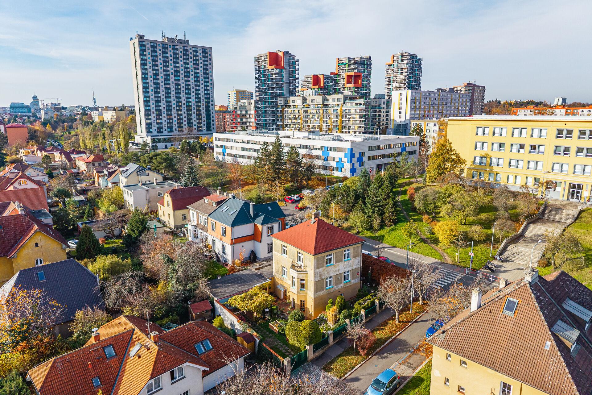 Ulice Břežanská je klidná, rezidenční a působí velmi příjemným, komorním dojmem. Zároveň se během pár minut dostanete do centra města.