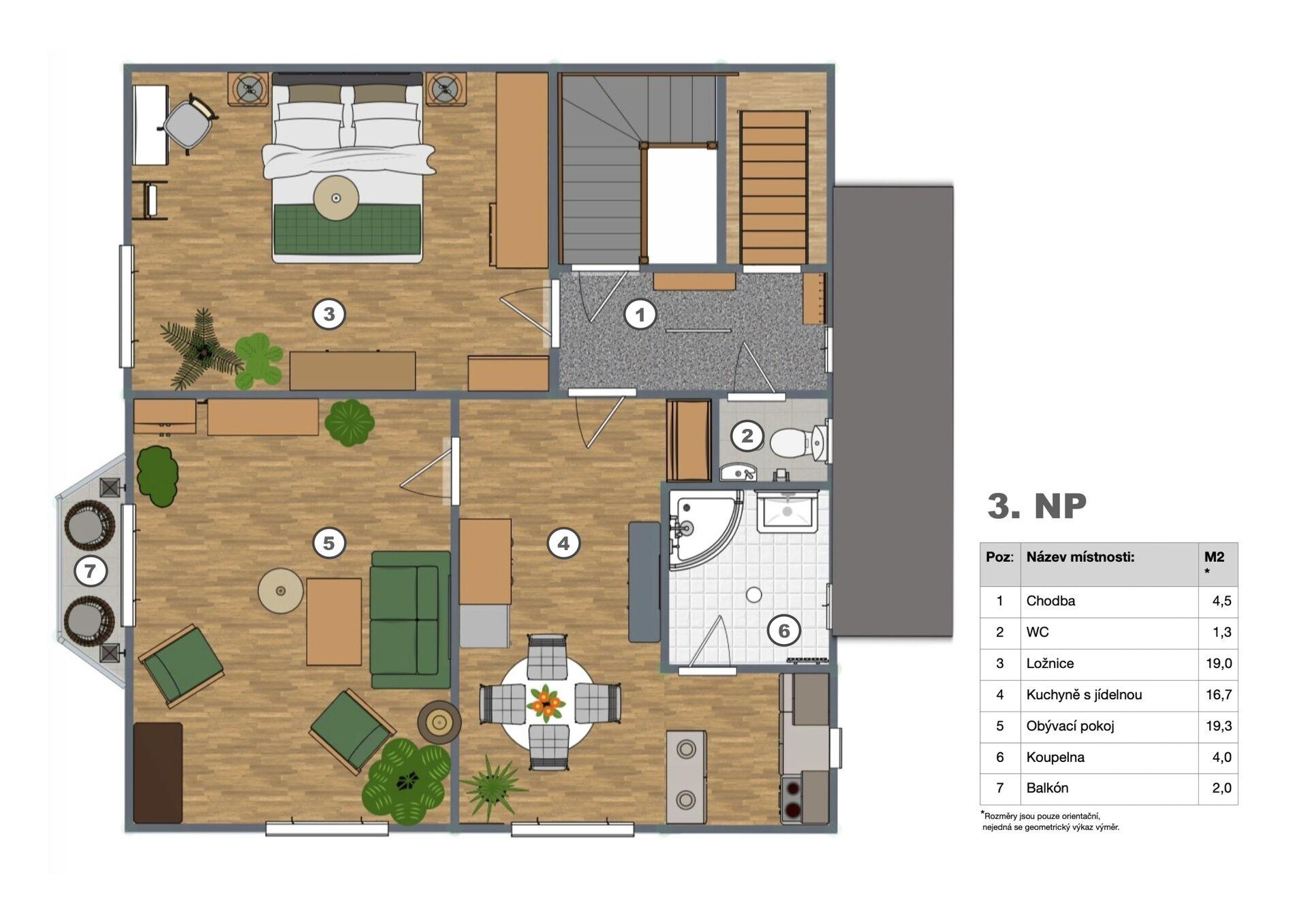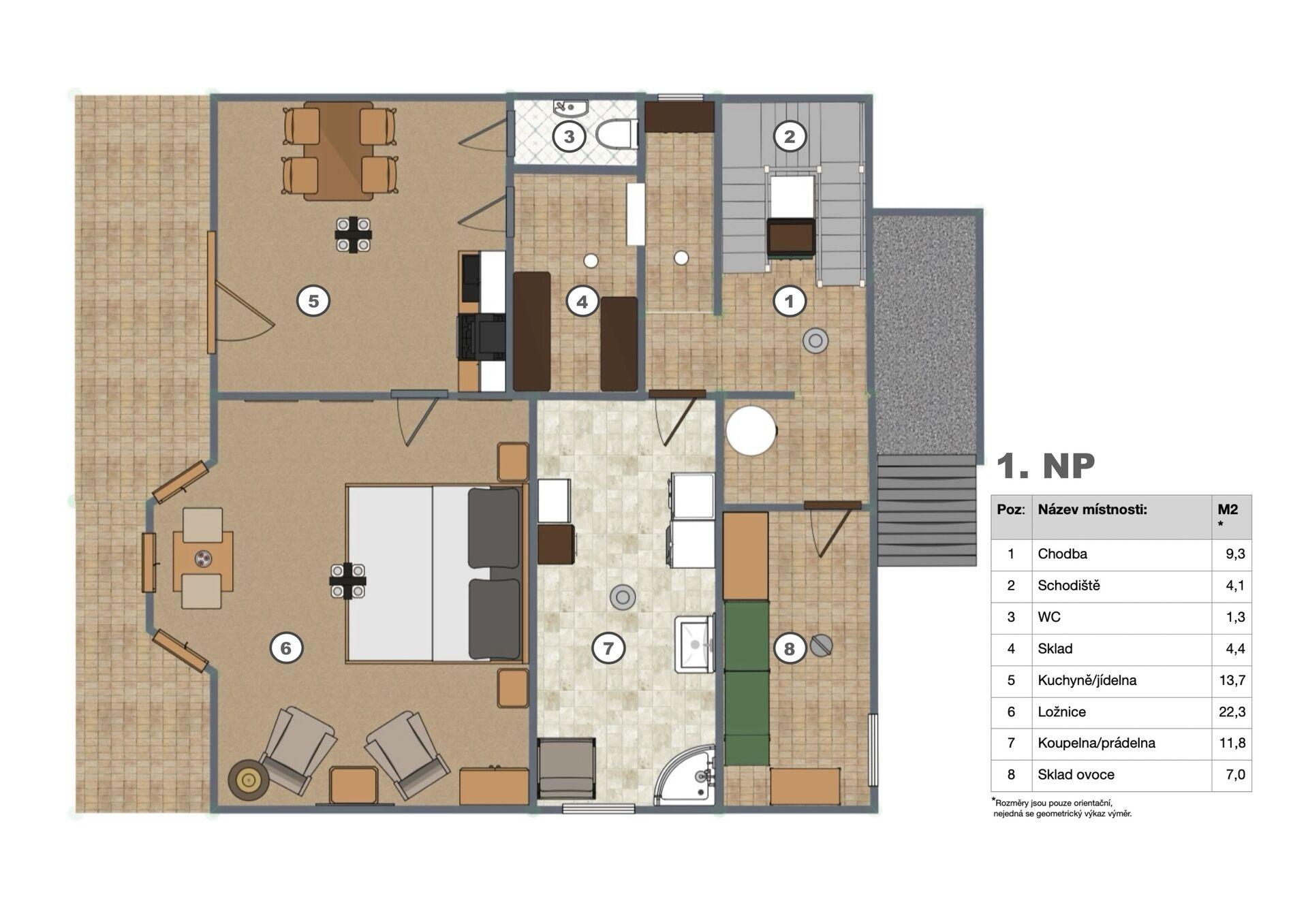 1. patro (hlavní obytné):